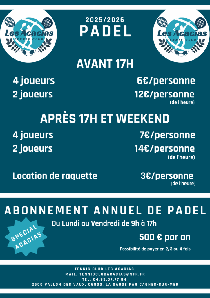 Le padel est un mélange entre le tennis et le squash, qui se joue en double sur un court plus petit. Accessible à tous les niveaux, c’est un sport convivial et dynamique qui vous permettra de vous dépenser tout en vous amusant !